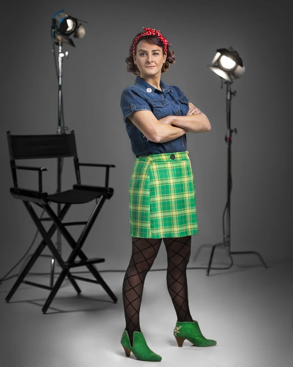 Agent Rosie firmly stands here on set as a trend setter in an industry with far too few female agents. As an ally for those in the director's chair, impacting and inspiring the voices of both women and men. This Modern Rosie portrait depicts my cousin Heather in a powerful light. As a beaming symbol to her daughter, our family, and the larger creative community. She expands the notion that women can be wildly passionate mothers inside their homes, while simultaneously being fierce economic agents for change outside.