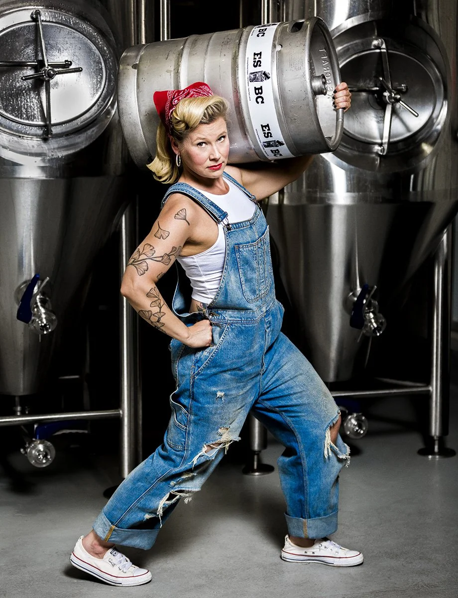 Katherine’s portrait, donning Rosie the Riveter-like attire, proudly carrying one of their kegs in front of a fermenter became a foundational image for the series. She embraced the persona of the 1940’s Rosie completely. Modernized with her badass tattoos, torn overalls, and All-Stars. Her statuesque “We Can Do It” spirit raging as the rare woman craft brewery owner lifting up her community through good beer and the conversations had while sharing their beer.